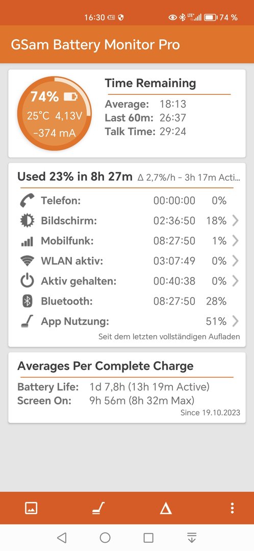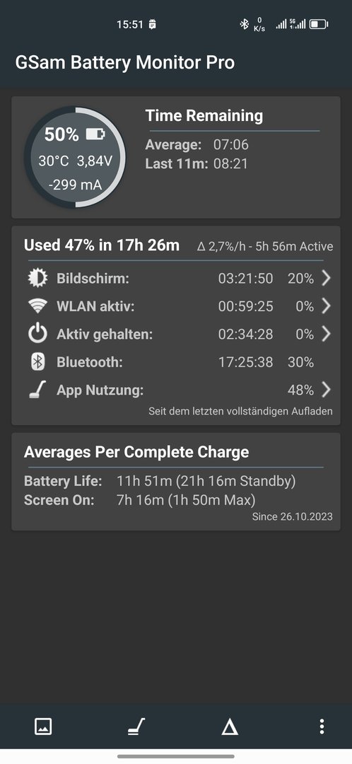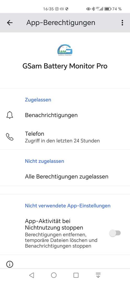 Zudem muß man in Einstellungen - in die Suchleiste Akkuoptimierung eingeben, in dieses Menü hineingehen und mit dem Pfeil nach unten neben "nicht zugelassen" auf "Alle Apps" umschalten und dann GSam suchen und die Akkuoptimierung auf "nicht zulassen" stellen.