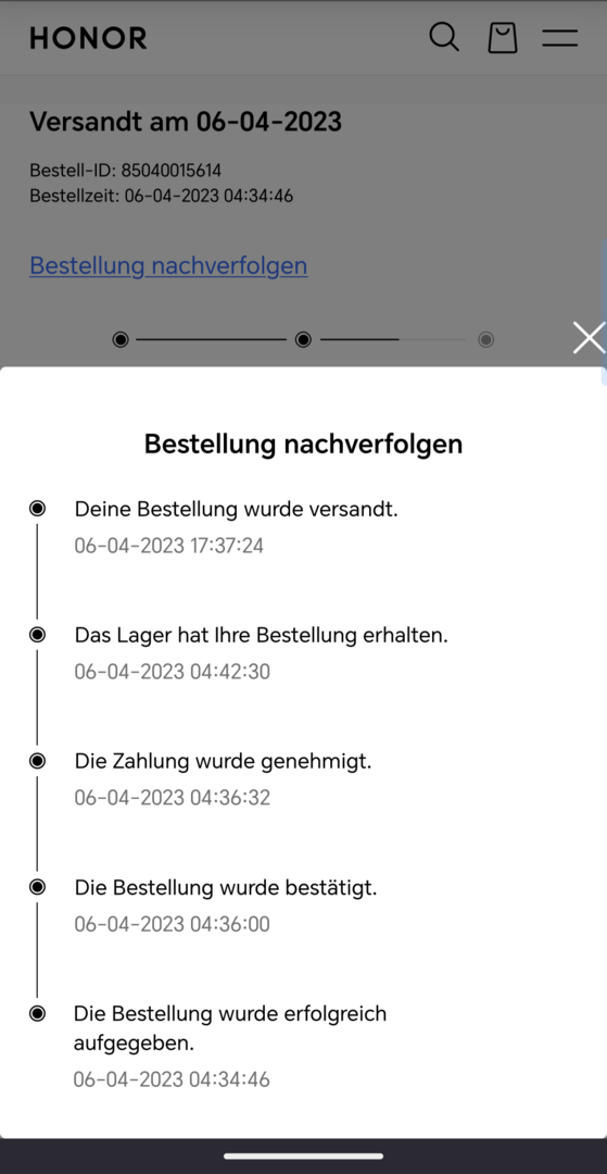 in diesem Topic können wir uns über den aktuellen Sendungs- bzw. Tracking-Status unserer Honor Magic5 Pro Bestellungen unterhalten. Am besten wäre es, wenn jeder Besteller gleich mal ein paar Informationen zu der Order mit postet - bspw. den Zeitpunkt der Bestellung, den gewählten Versanddienstleister, etc.
