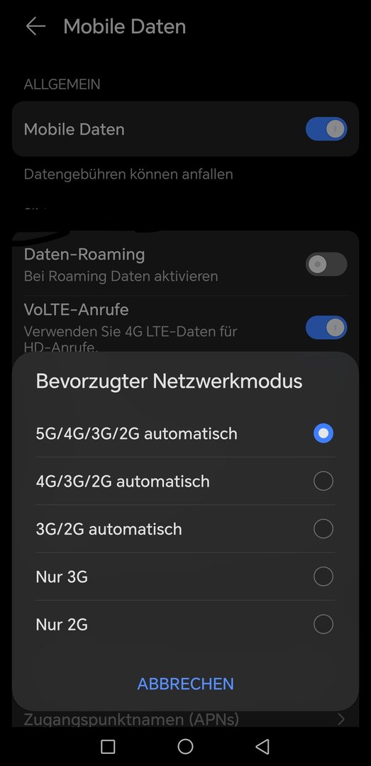 dw1337 schrieb:- Netzwerk lässt sich nicht auf beliebigen Modus forcieren (zB 4G/3G only), es wird regelmäßig mit 2G verbunden, obwohl 3G oder 4G verfügbar wäre