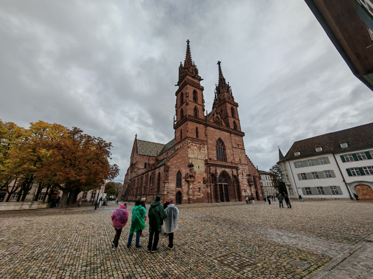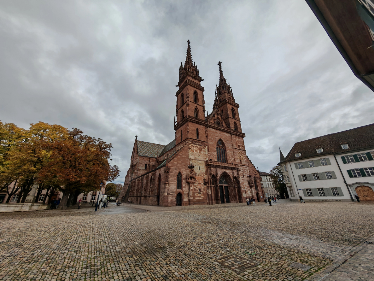 Beim Basler Münster ließen sich nur die Personen im Vordergrund und die näheren rechts entfernen. Die Leute weiter hinten rechts erzeugten beim Entfernen entweder Artefakte oder unerwartete Objekte wie Kästen oder Bänke.