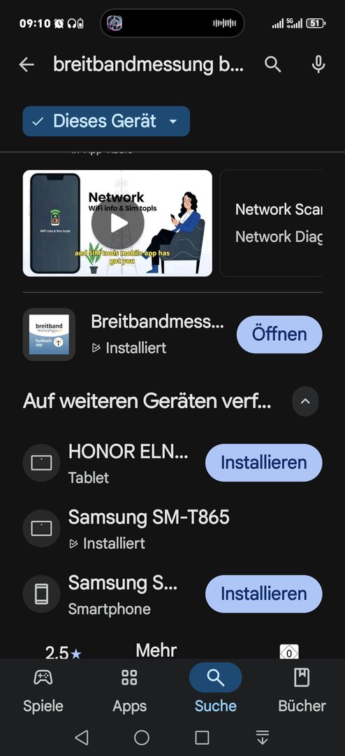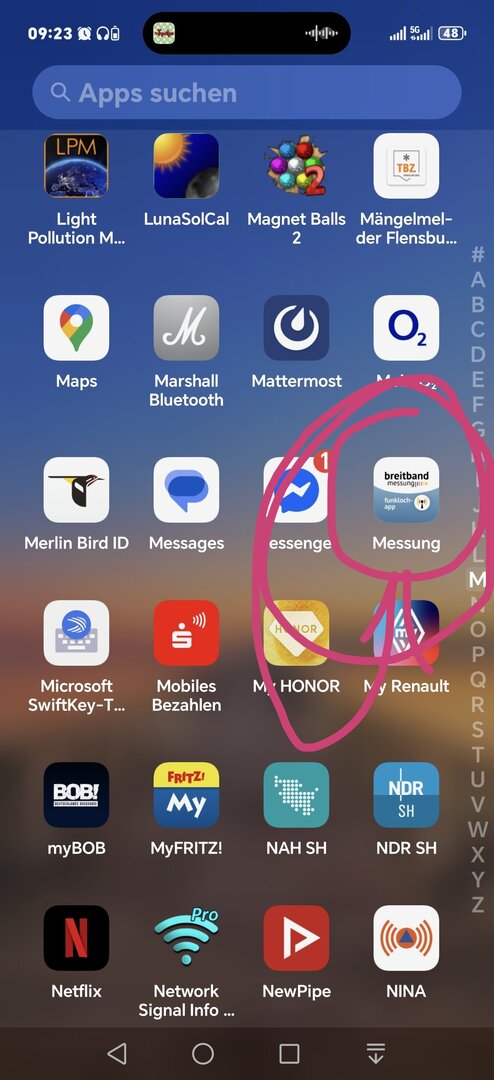 Hier als Beispiel die App Breitbandmessung.