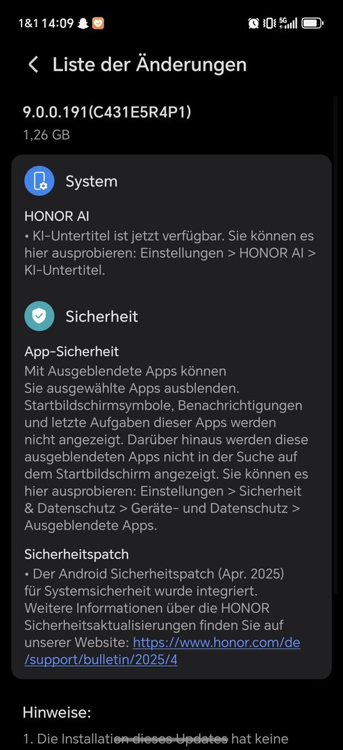 Wir verstehen Ihre Situation und möchten Ihnen versichern, dass Honor großen Wert auf die kontinuierliche Bereitstellung von Updates und die Einhaltung der geltenden gesetzlichen Bestimmungen legt. Die Bereitstellung von Sicherheitspatches und Funktionsupdates erfolgt in der Regel stufenweise, abhängig von verschiedenen Faktoren wie Modell, Region und Testzyklen.