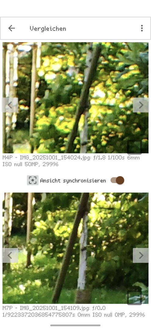 teddy4you schrieb:@GoogleNerd Ich sehe die Kamera mit der Firmware und vor allen die Honor-Kamera-App auf jeden Fall auch nicht auf Highend-Niveau. Wenn ich da Fotos mit meinem älteren M4P vergleiche, dann liefert das bessere, schärfere und detailreichere Fotos, als das M7P.