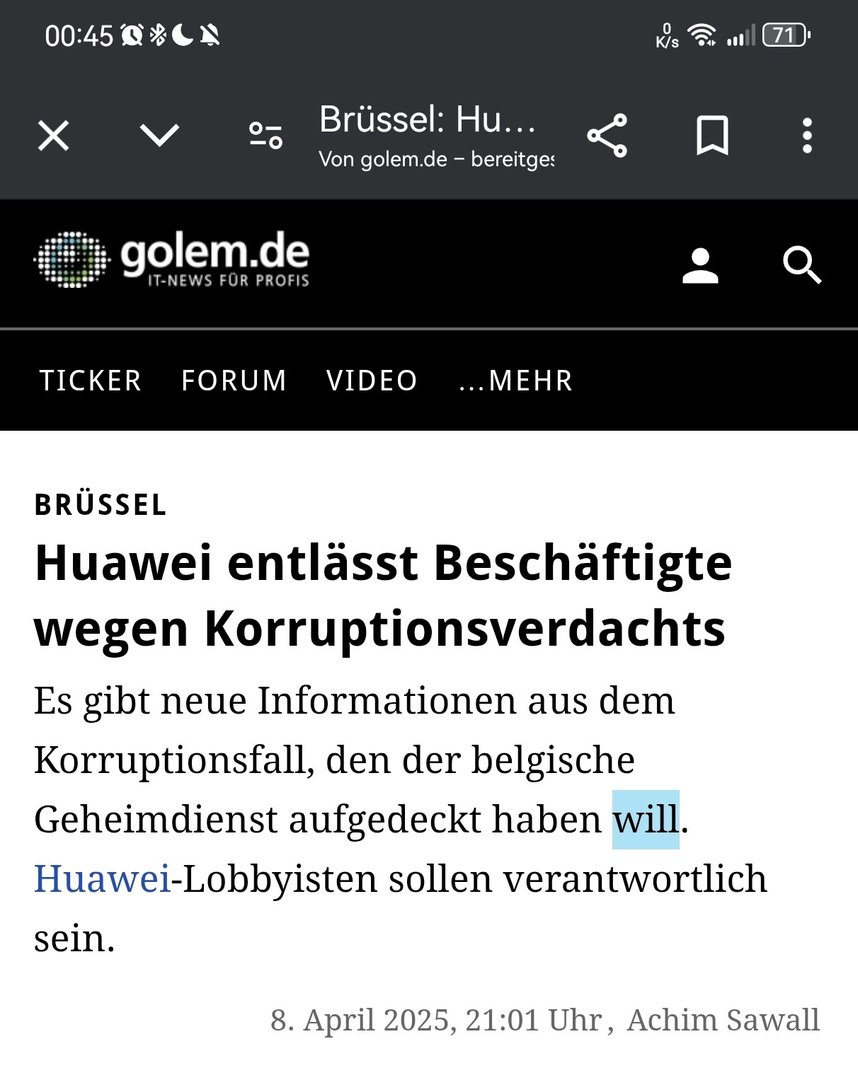Da magst du allgemein ÜBERGREIFEND schon recht haben ... Ich finde aber, dass die wirtschaftliche Situation Deutschlands und die Professionalität derer, welche UNS hierbei nach innen und AUSSEN vertreten schon Einfluss darauf hat, wie mit Huawei als wirtschaftlichem Global Player hierzulande umgegangen wurde und wird. Ist aber nur MEINE Meinung.