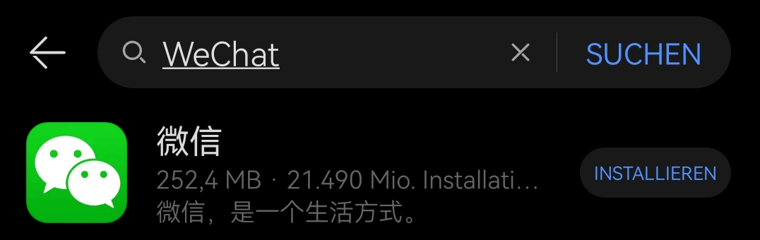 - in 2023 in China gelebt, dort die "chinesische" Version von "Wechat" installiert (V 8.0.38, ältere Version, als apk installiert.