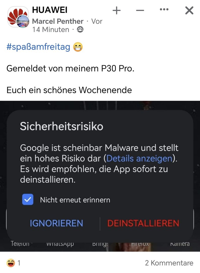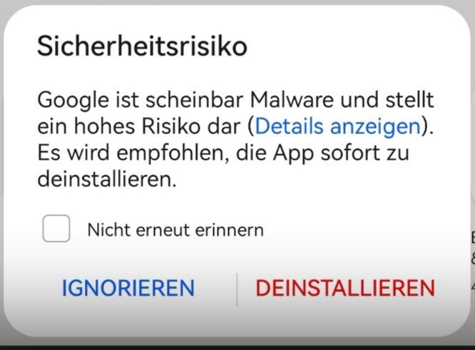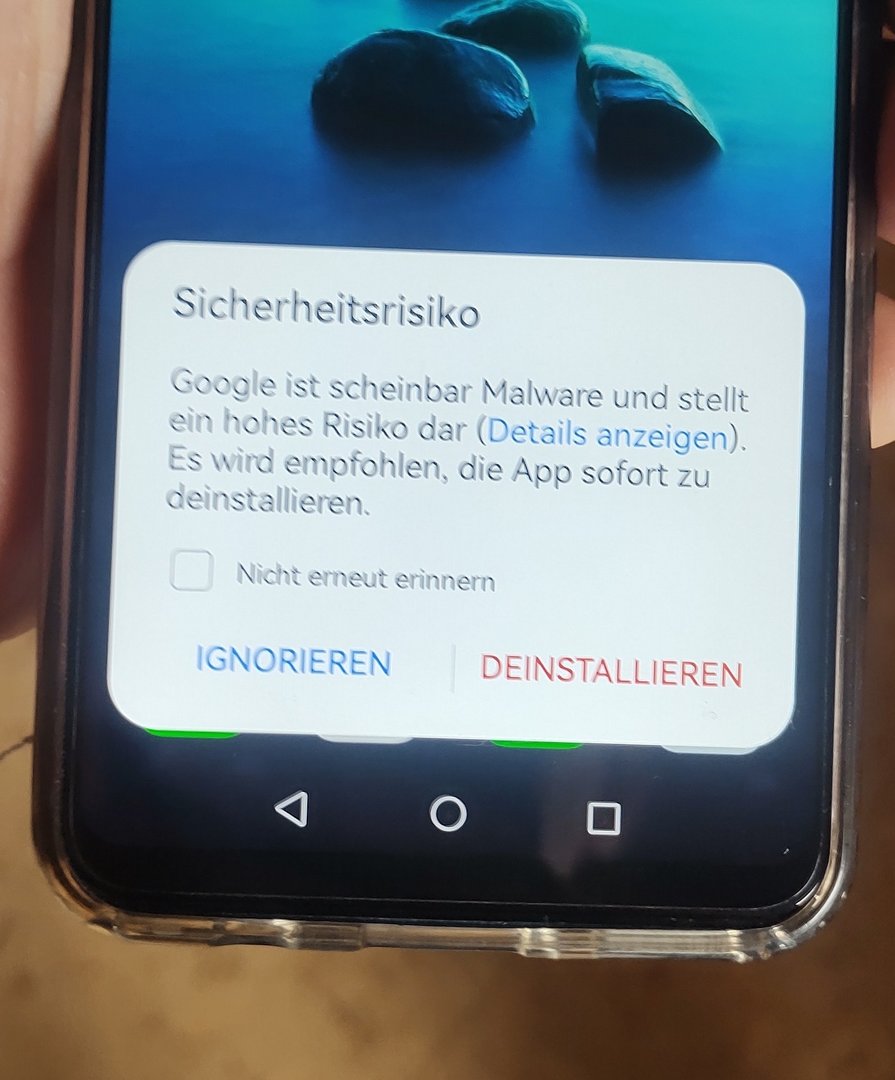 "Sicherheitsrisiko: Google ist scheinbar Malware und stellt ein hohes Risiko dar. Es wird empfohlen, die App sofort zu deinstallieren." - diese und ähnliche Fehlermeldungen suchen momentan zahlreiche Android-User heim: Google wird als schädliche App gemeldet. Die Meldung tritt lediglich auf Huawei-/Honor-Smartphones auf, bei denen Google als potenziell schädlich / Malware gemeldet wird.