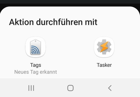 Ich habe irrtümlich bei einer Nachfrage, ob "Tasker" oder "Neues Tag erkannt" dafür benutzt werden soll "Immer" gedrückt.
