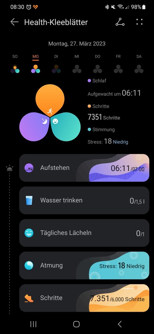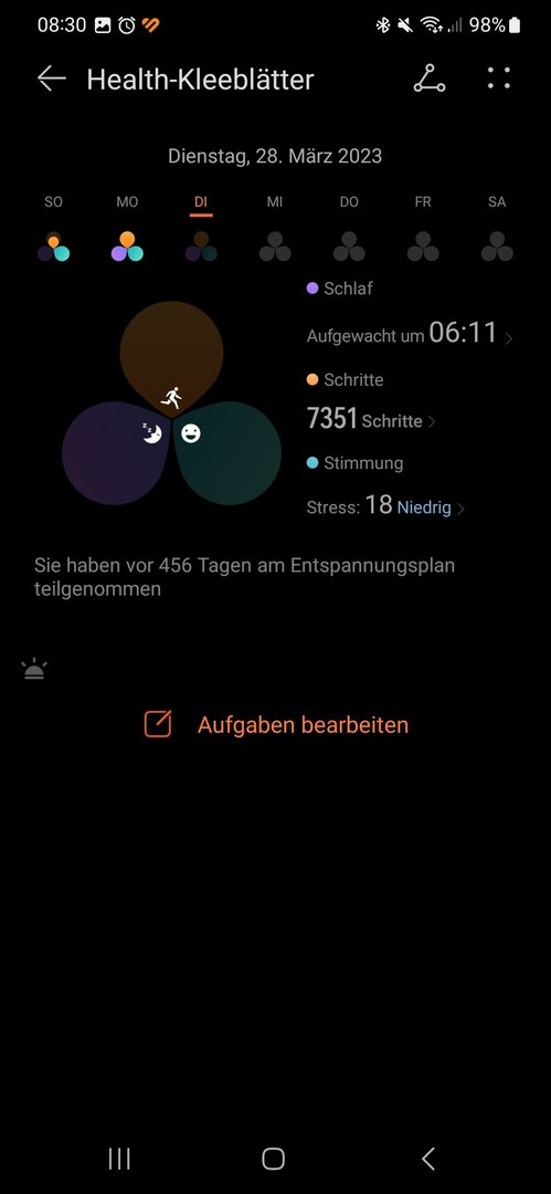 Ich kann seit gestern 27.03.2023 nicht mehr in der Huawei Health app die Aufgabe Trinke etwas Wasser abhaken.