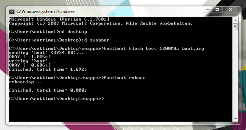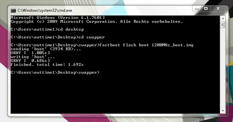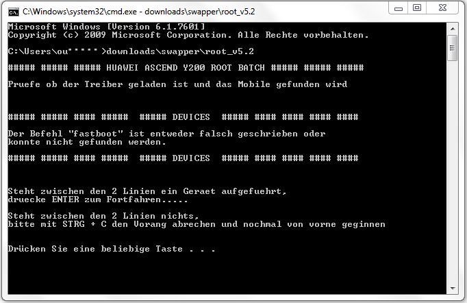 3. Funktioniert die .bat bei dir nicht, da in dem Pfad die "fastboot.exe" fehlt, warum auch immer. Steht aber so in der Eingabeaufforderung