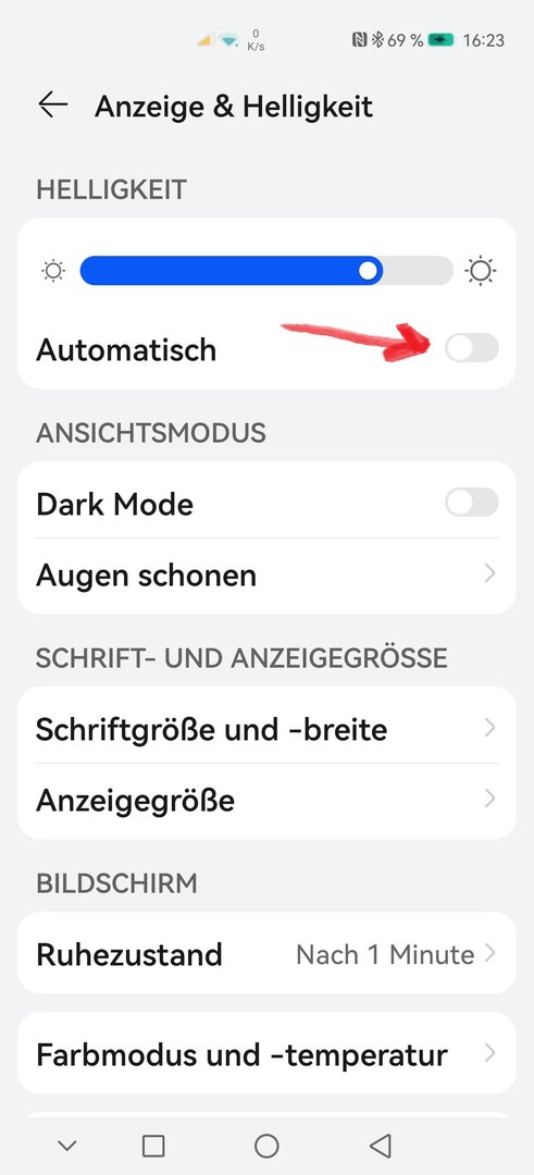 Licht aus, Displayhelligkeit eingestellt...