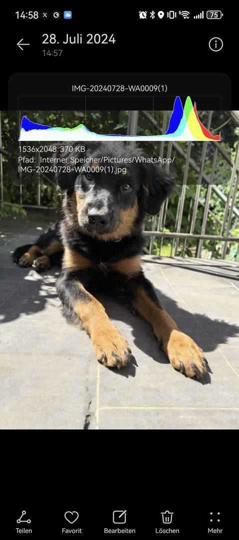 Jetzt habe ich das EXAKT selbe Bild (welches mit dem Huawei geschossen wurde) einmal mit meinem iPhone 15 pro verschickt. Auch über WhatsApp.