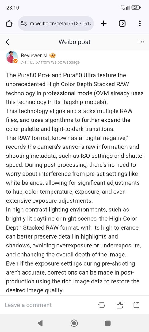 Ja, wurde auf Weibo schon bestätigt, davon abgesehen hat jetzt leider auch bei den RAW's die KI ihre Finger im Spiel, dann haben wir das nächste Drama, die camera2api ist bei Huawei mehr als problematisch, da können wir uns die Motioncam und Proshot aufzeichnen, da sind Vivo, Oppo und Xiaomi Musterschüler dagegen, also ObachtUltraUu schrieb:Und das Zehnfach Telezoom soll wirklich kein RAW beherrschen