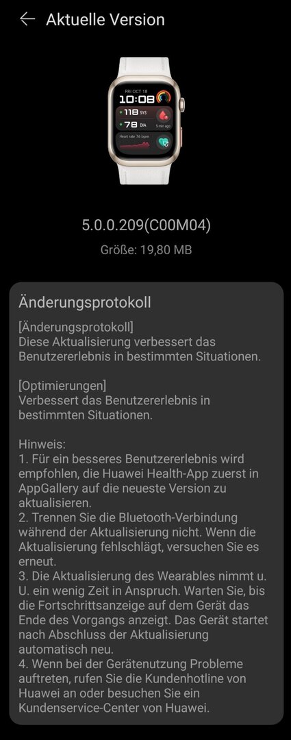 A Anzeige Gerade eben Neu Hallo W113, schau mal hier: Update Huawei Watch D2 HarmonyOS 5.0.0.209. Dort wird jeder fündig!