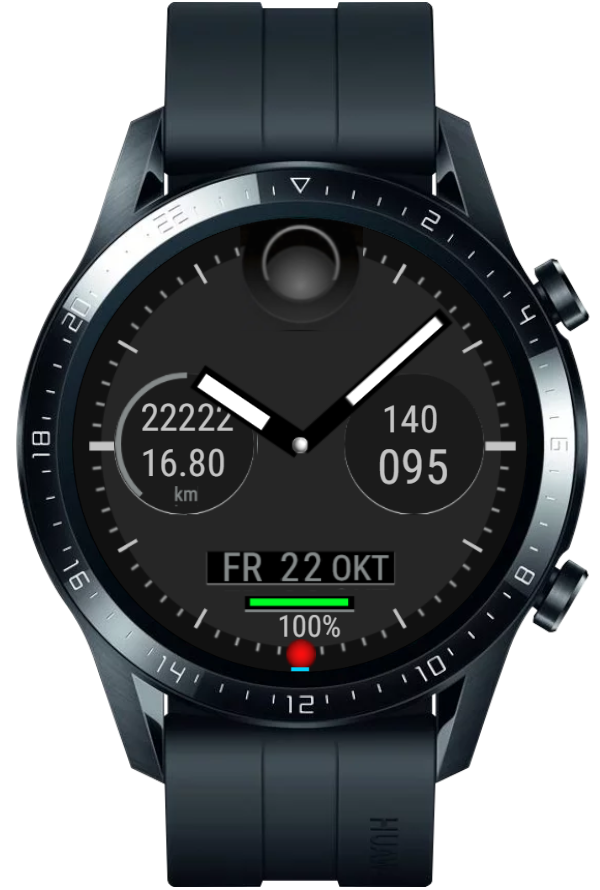 1. Mittig nur die stundenzahl anzeigen lassen dafür größer, Minuten werden ja schon beim blauen Kreis angezeigt