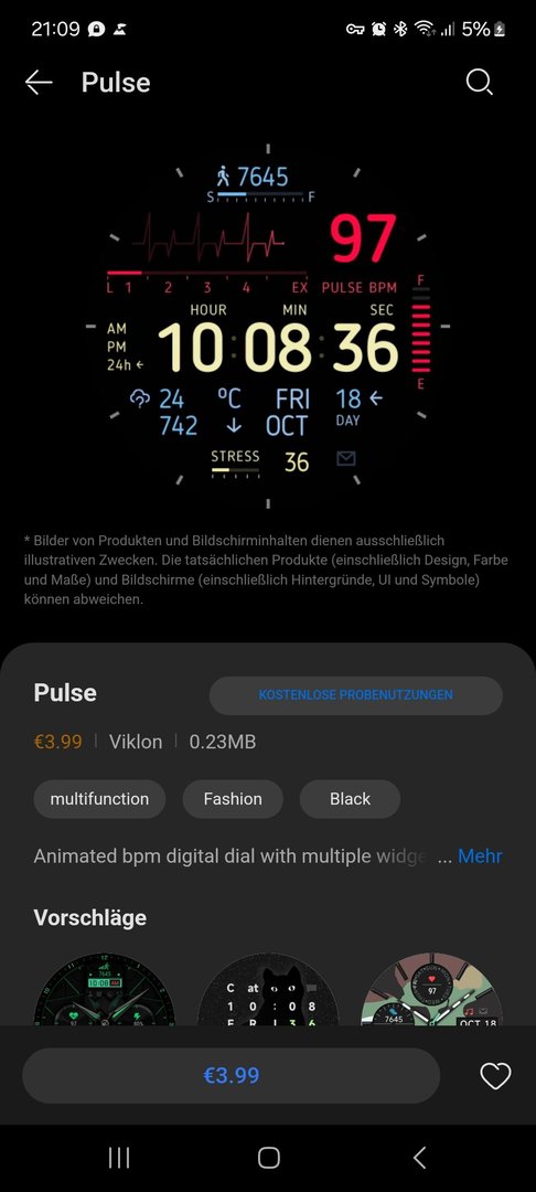 Ich bin auf der Suche nach einem Watchface mit großer deutlicher Pulsanzeige.