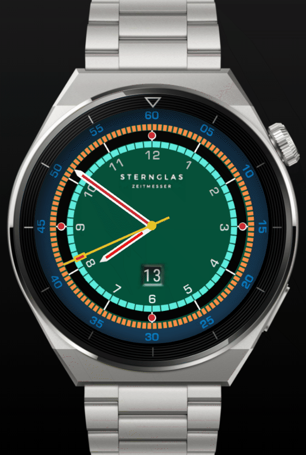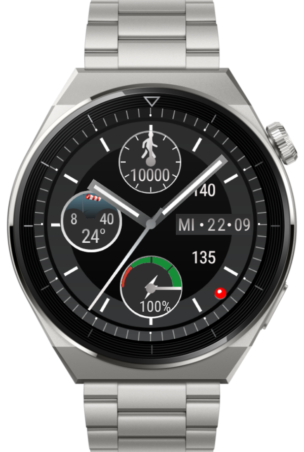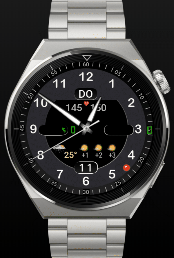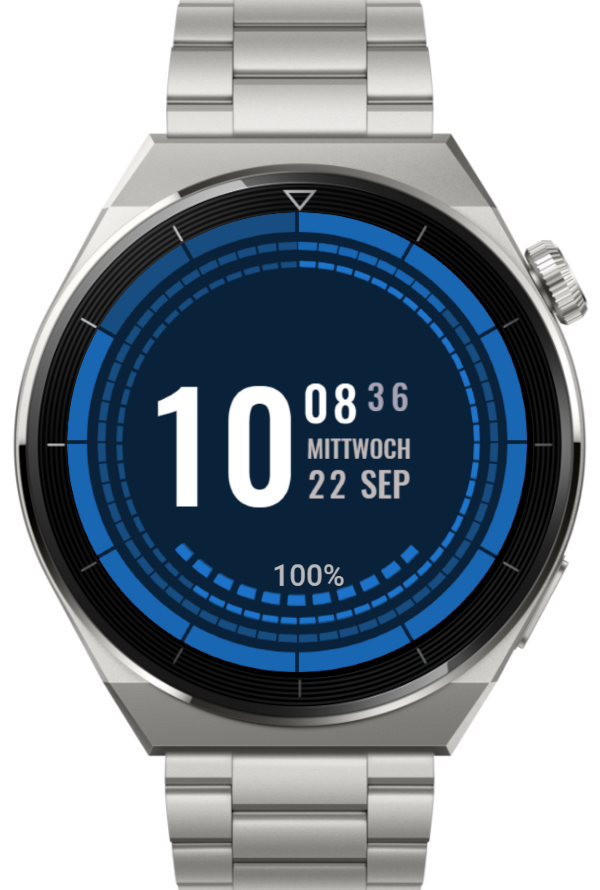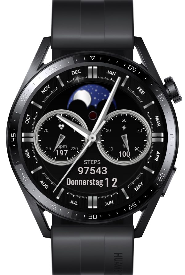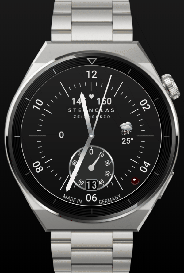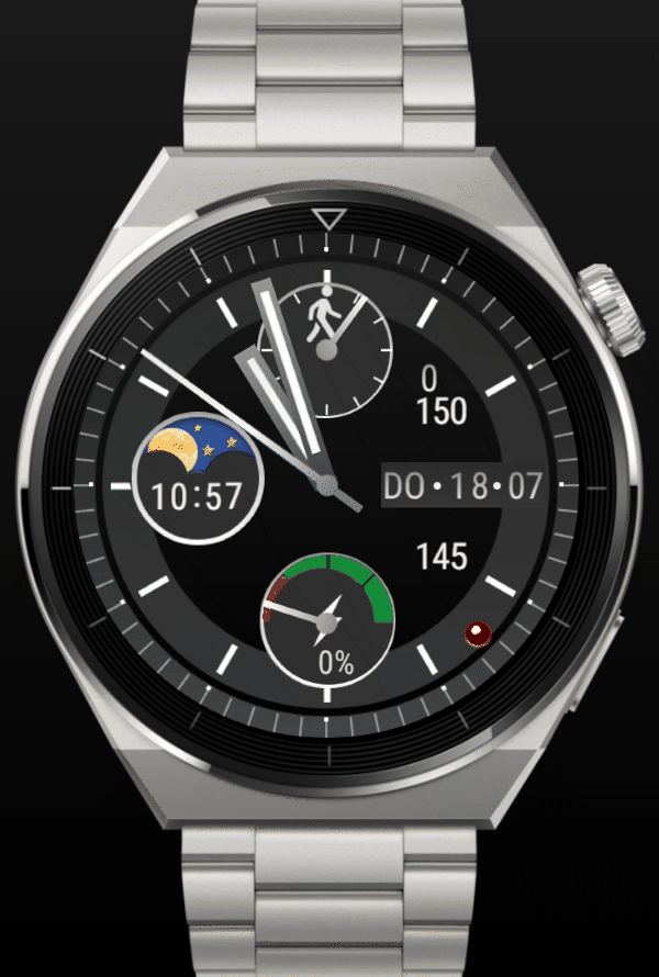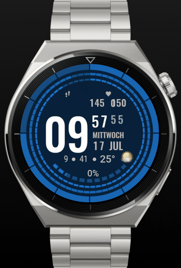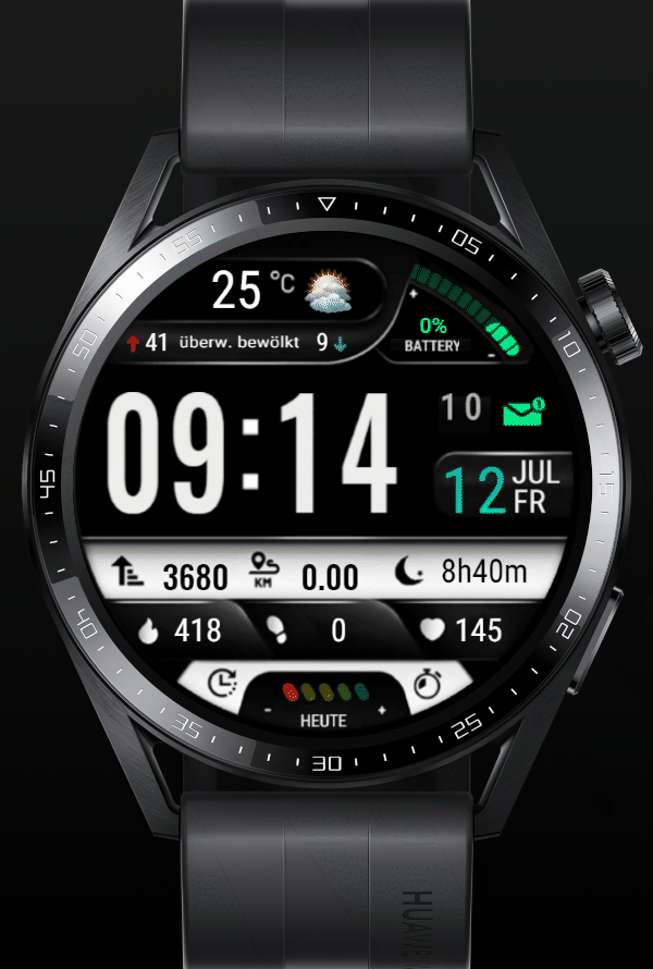 Anzeigen - Puls - Akku - Schritte - Wetter üb. Zahnrad wählbar, ein/aus