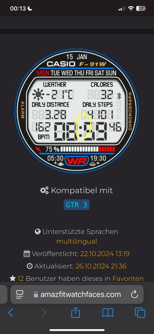 Ich stelle jetzt meine WF(analog/Ziffern) von 12 Std. auf 24 Std.Anzeige um.