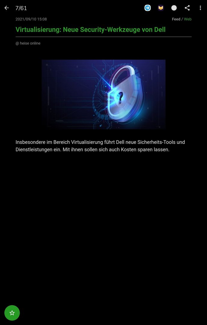 In der aktualisierten Liste stehen alle Feeds drin. Ich scrolle, nachdem alles Wichtige gelesen wurde, nach unten und markiere das per grünem Haken. Dabei sollte sich die Liste automatisch löschen.
