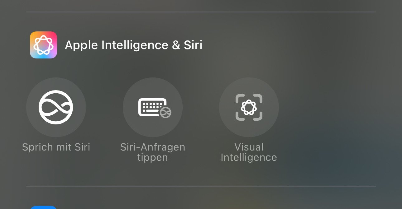 Wo denn?MoervYO schrieb:Visual Intelligence gibt es auch als Shortcut für das Kontrollzentrum.