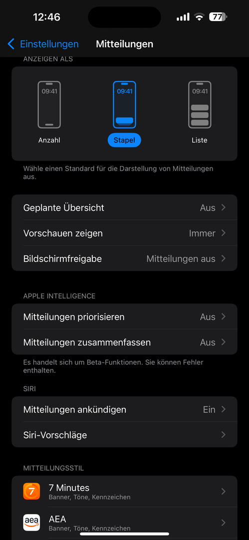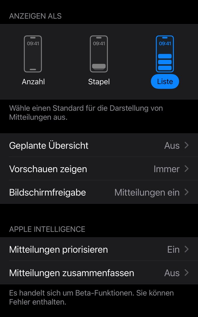 Seit iOS 18.4 wird mir im Always On Display nur noch die Anzahl neuer Mitteilungen angezeigt. Bisher wurden mir jedoch viel mehr Details angezeigt. ZB. bei WhatsApp die Nachrichtenvorschau, bei Erinnerungen die gesamte Erinnerung etc. Gibt es eine Möglichkeit das wieder genauso einzustellen. Habe bisher nichts in den Einstellungen gefunden (Mitteilungen sind eingestellt auf „immer“, also auch im Sperrbildschirm ganz normal sichtbar).