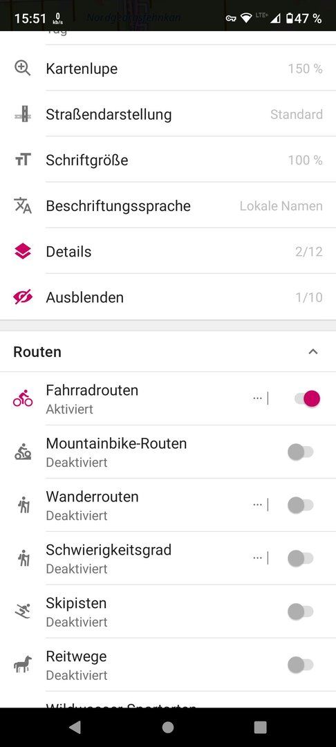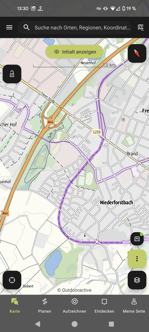 Nun suche ich eine App, die mir diese Trassenwege anzeigt.