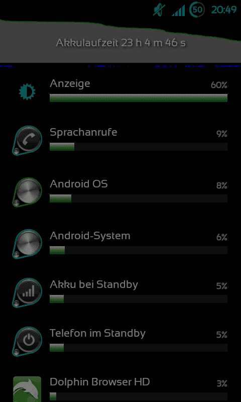 Also ganz ehrlich wenn man das hochrechnet und ich das als Standardnutzungverhalten für mich her nehme, komme ich in fast 2 Tagen auf ca. 5Std. Display und fast ebensoviel Musikhören.