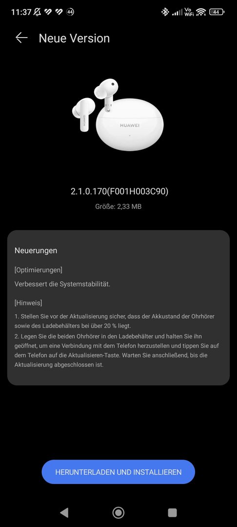 Die Rauschunterdrückung an/aus, geht zum Glück auch ( langes Drücken = Durchschalten der Geräuschmodi, also ANC und Transparenzmodus (Bestätigungsansage); zweimal Tippen = Fortsetzen/Pausieren der Wiedergabe und Annehmen oder Beenden des Anrufs; Lautstärke hoch/runter = am Stiel hoch oder nach unten wischen.) Nur eben das Update geht ohne App nicht.
