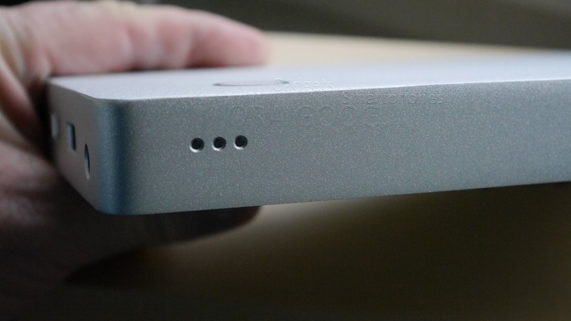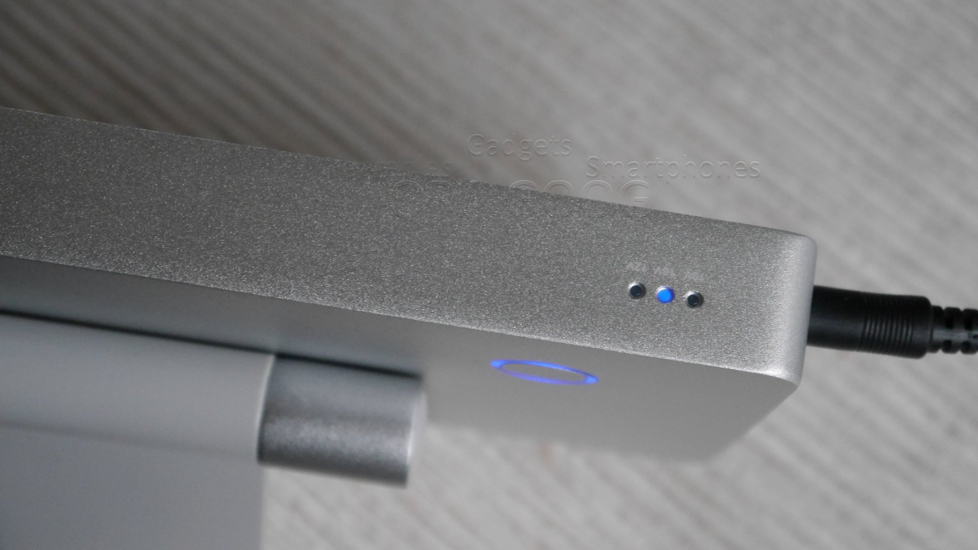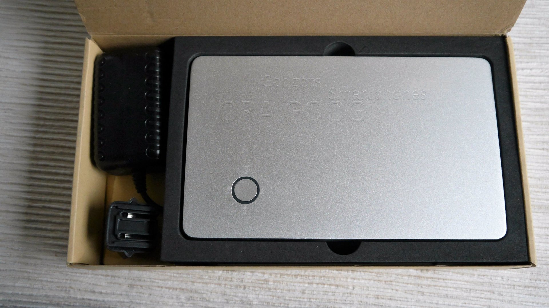 Das Gehäuse besteht aus einer Aluminiumschale, deren Rückseite mit einem Plastikboden abgedeckt ist. Auf der Oberseite befindet sich der Namenszug des Herstellers und ein Taster dessen LED-Farbe zur Anzeige des Ladezustands dient.