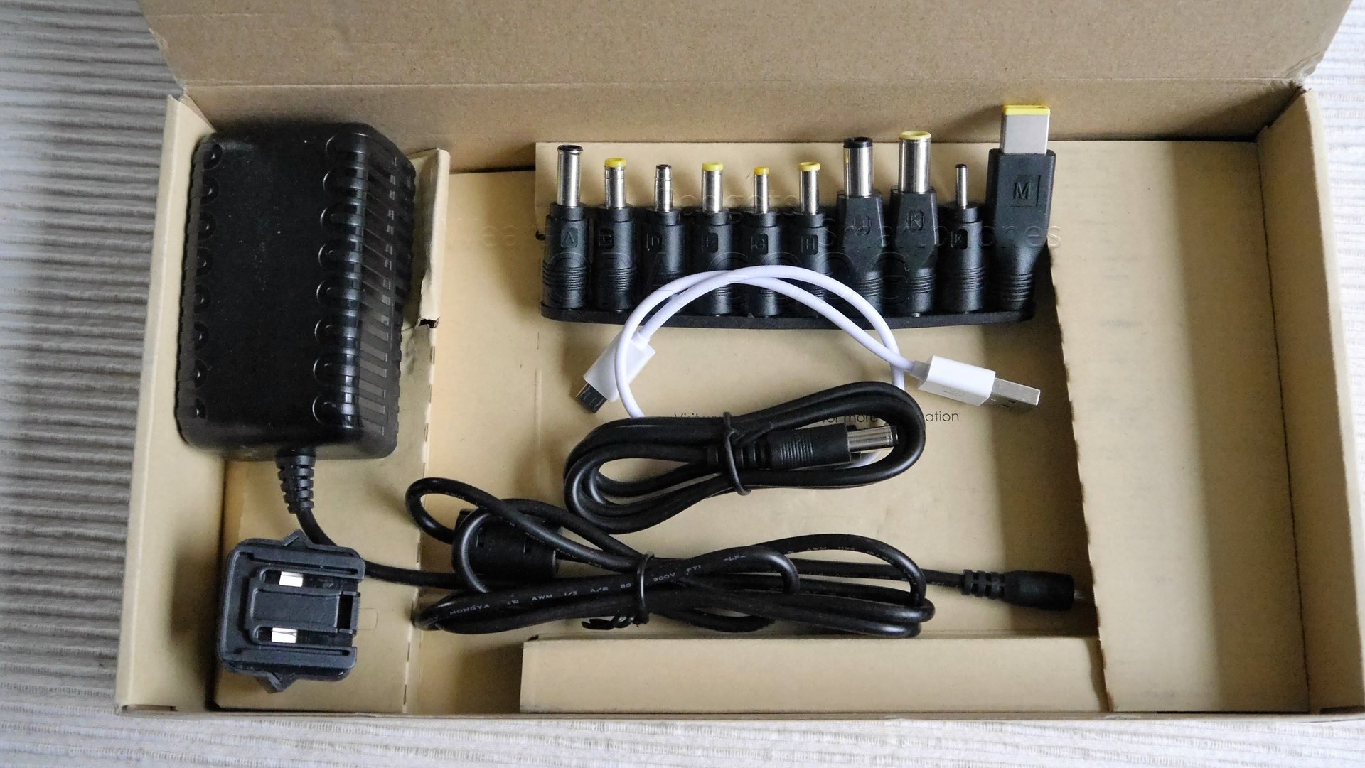 Die eigentliche Besonderheit ist aber der DC 12/16/19V Spenderausgang. Mit diesen und den mitgelieferten Adaptern lassen sich eine Menge Laptops auch eine Weile bei leeren Akku betreiben.
