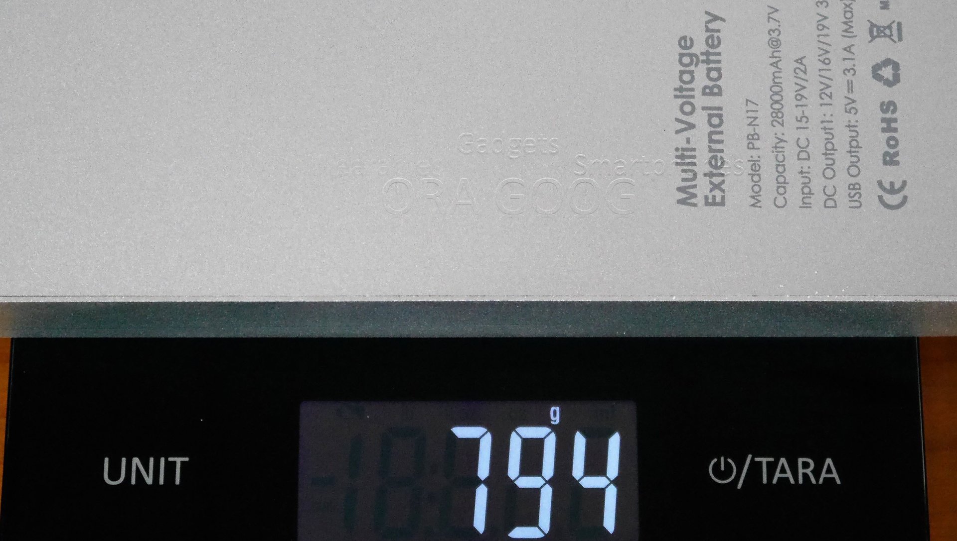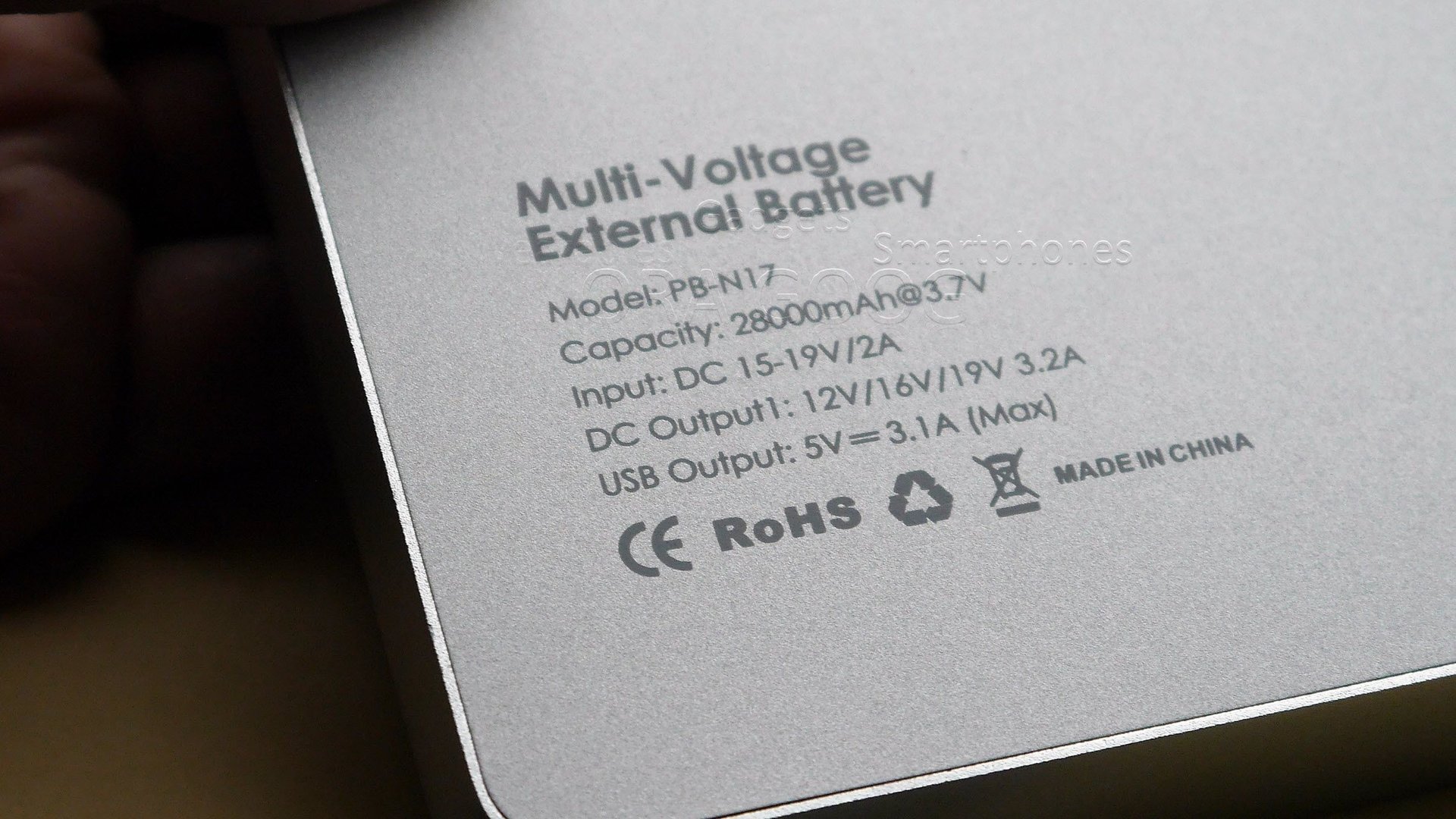 Kapazität: 103.6Wh (also bei 3,7V = 28.000mAh und bei 5V = 20.720mAh) Siehe Angaben auf der Rückseite!