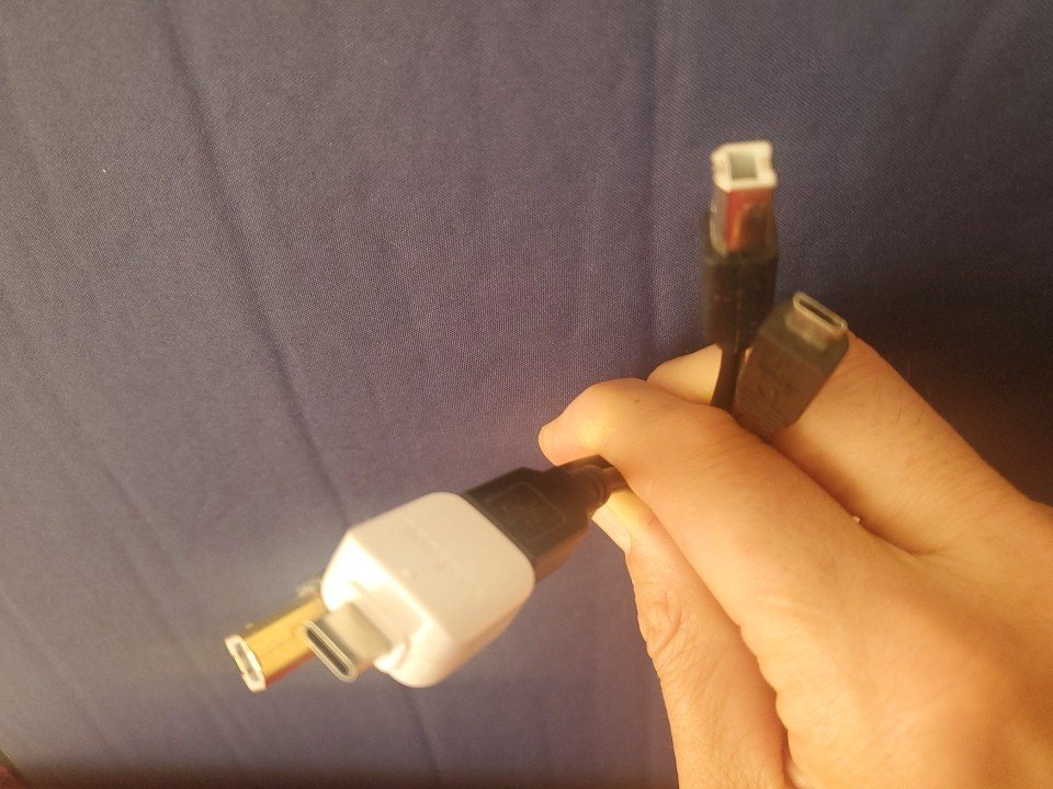 die beiden USB-Kabel, links und rechts, nutze ich, um das S5 und S9 Galaxy am DAC anzuschließen. Gibt es diese Kabel auch ohne die lästigen Zwischenstecker und -adapter? Im Internet suche sich seit langem ...