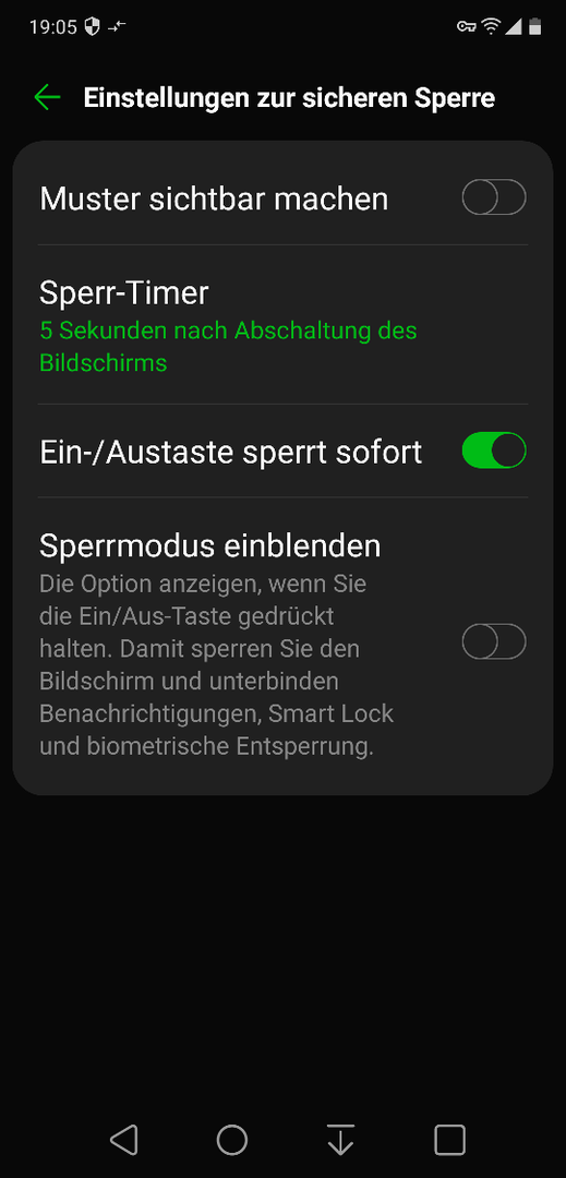 "Ein-Ausschaltknopf drücken sperrt sofort" habe ich deaktiviert.