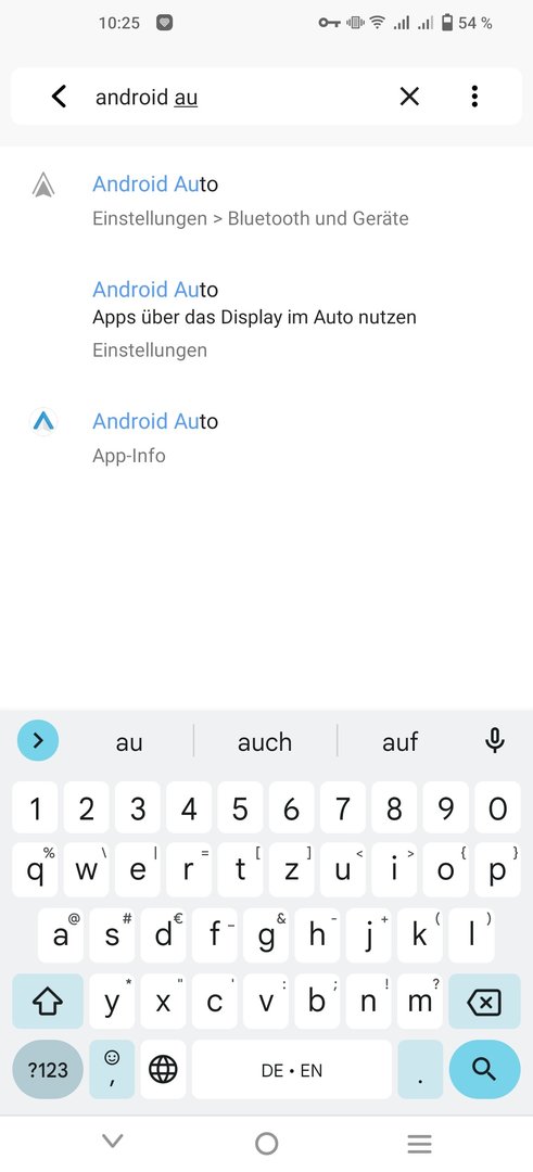 1) In die Einstellungen gehen und "Android Aut*" suchen und "Android Auto / Einstellungen" (hier der 2. Punkt) wählen: