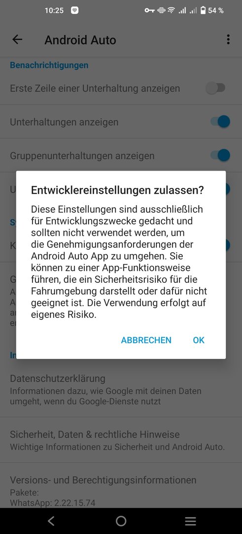 Entwicklereinstellungen hatte ich schon aktiviert gehabt (ich glaube als wlan ermöglicht wurde), nur unbekannte Quellen noch nicht. Aber, ME wurde dann zwar im Launcher sicht- und auswählbar, nur die Karte wurde nicht angezeigt. Folgende Meldung wird ausgegeben "Keine neue Nachrichten während der Fahrt". Auch ME zuerst auf dem Smartphone starten (mit Zielführung) und dann erst mit AA verbinden änderte nichts.Espressojunkie schrieb:Zu Android Auto: