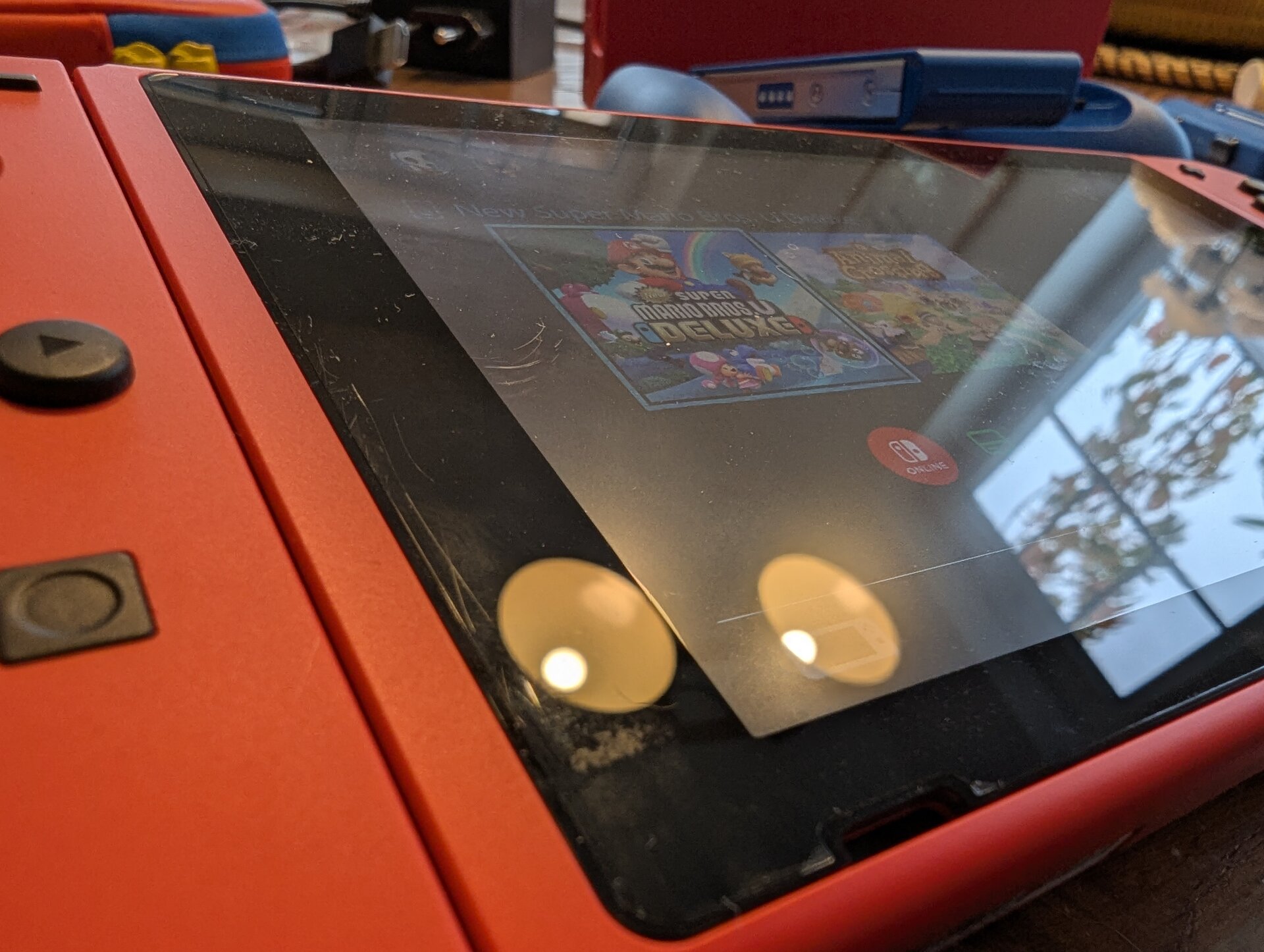 Ich bin Erstbesitzer der Konsole. Seit Kauf ist eine Displayschutzfolie aufgebracht. Das Display darunter ist also neuwertig.