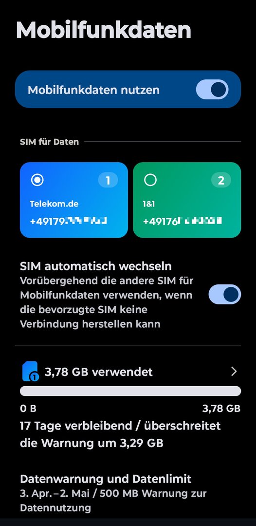 Die zweite SIM ist eine 1&1 mit 1GB im O2-Netz.