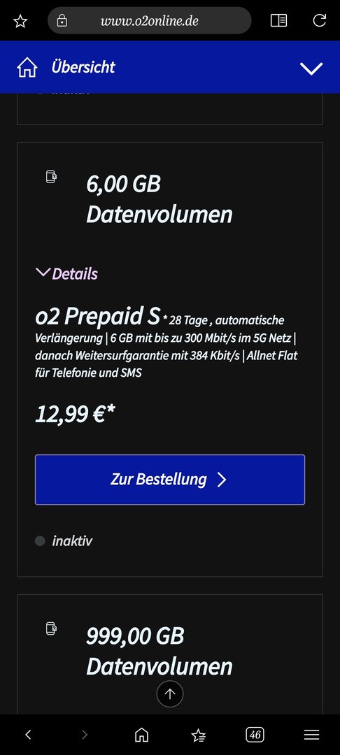 Der Tarif O2 Prepaid L erhält ein Upgrade von 18 auf 25 GByte, die Grundgebühr für vier Wochen beträgt 19,99 statt 22,99 Euro. Unverändert bleibt O2 Prepaid Max mit 999 GByte für 74,99 Euro (vier Wochen).