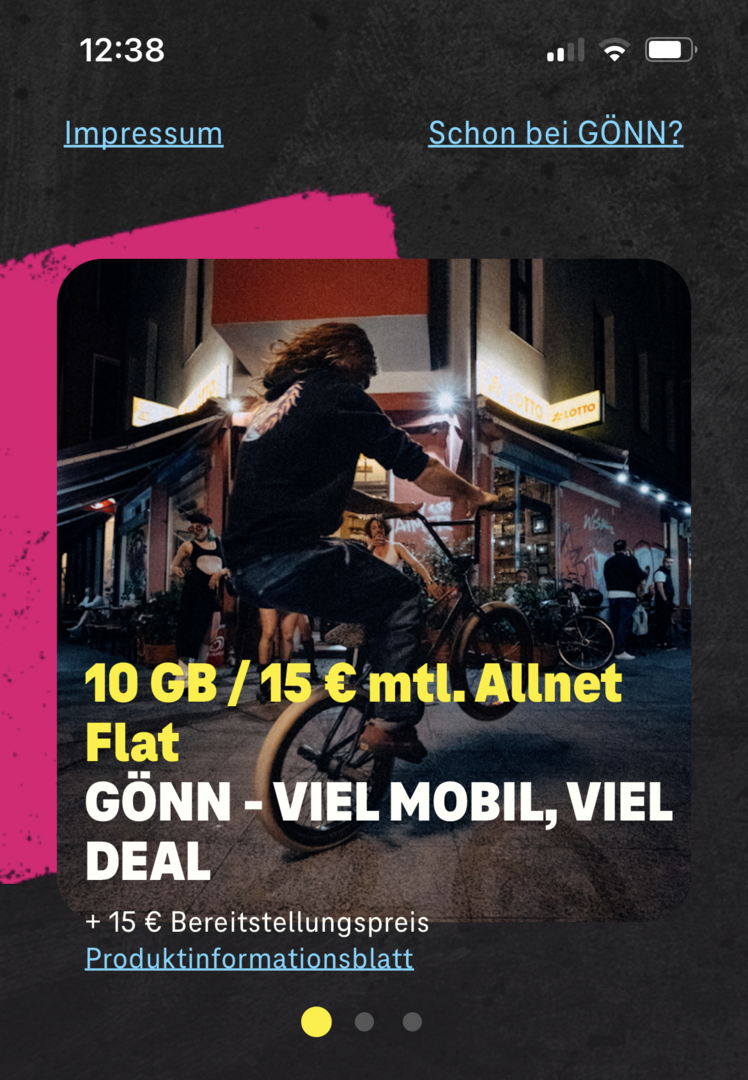 - 3 Tage pro Monat 24 Stunden unbegrenztes Datenvolumen (mehr mit GÖNNEFITS-Codes)