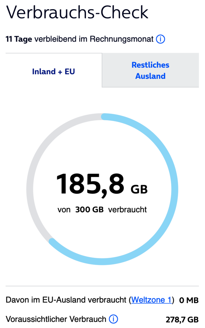 Da geht's Dir wie mir ... hab' auf die Weise immer (seit 9/24 ?) 16 GB zur Verfügung und braucheChefingenieur schrieb:... bereits zum dritten Mal das Restvolumen vom Vormonat übertragen gekriegt. Hab aktuell knapp 14GB zur Verfügung.