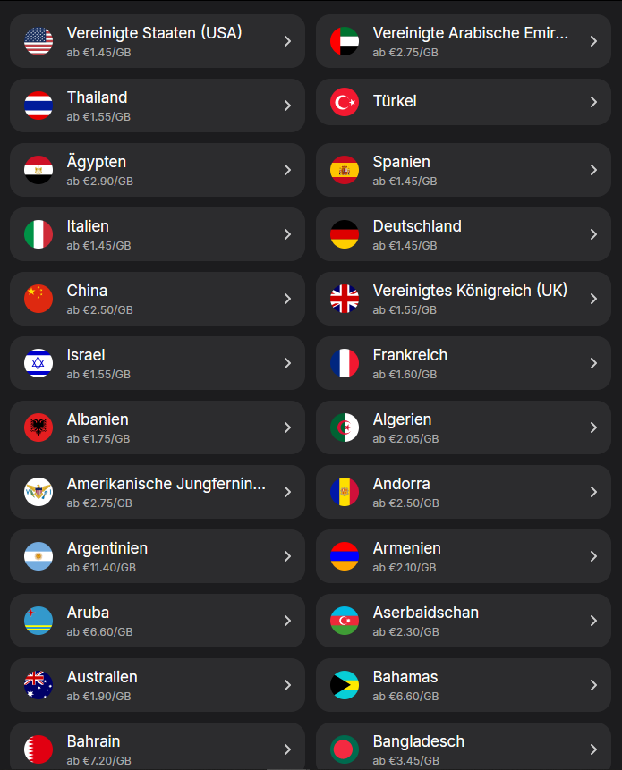 Die Preise variieren natürlich je nach Land/Tarif... wie immer ist es gut vorab zu wissen wo man hinreist.