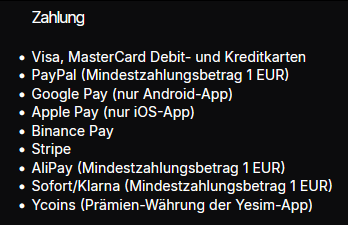 Die Zahlung scheint sehr einfach zu sein über diverse Anbieter: