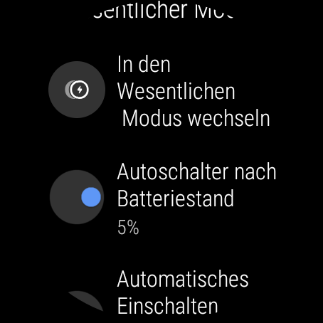 ich hatte jetzt schon ein paar mal den Fall das die Uhr komplett leergelaufen ist. Normal ist früher ab einem Wert X in den Wesentlichen Modus gewechselt. Bei der suche ob eventuell die Einstellung raus ist habe ich festgestellt das ich keinerlei Einstellungen mehr im Bezug zum Akku habe.