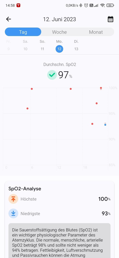 Sensor misst nach abnehmen der Uhr den Stress bzw. SpO2 nur noch sporadisch. Neustart der Uhr erforderlich..