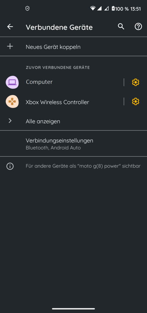 Mein Motorola G8 Power Smartphone ist mit dem Xbox Wireless Controller verbunden.