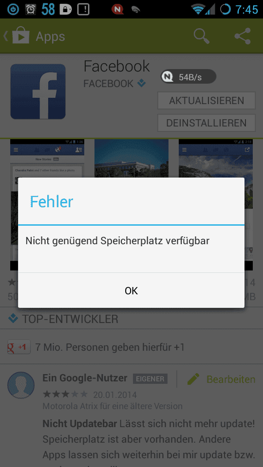 Andere Apps lassen sich installieren, oder updaten senden w aktualisiere.