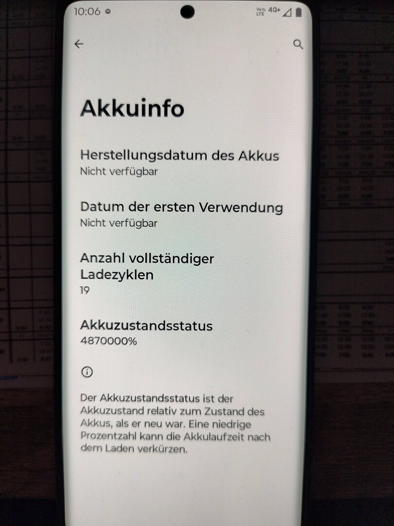 Gibt es bei euch auch kein richtige info im settings menu unter akku-info?