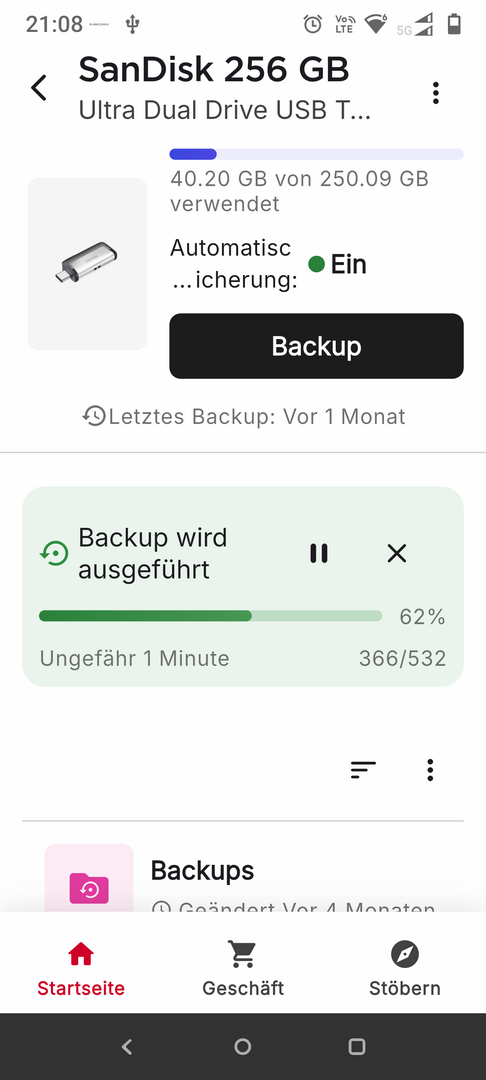Ich habe einen USB-Stick von SanDisk und in der dazugehörigen App "SanDisk Memory Zone Explore" die automatische Sicherung aktiviert.stoiniger schrieb:Wie sind den die Meinungen zu USB-Debugging anlassen oder nicht?