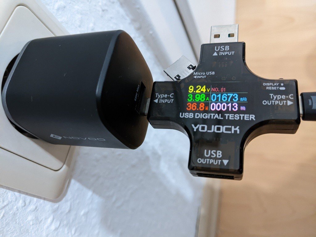 Bin gespannt ob bis zum Ende nächster Woche noch genug über bleiben, damit ich es mit einem guten Gefühl behalte.Ich habe gerade mit demselben Netzteil und dem Kabel des Netzteils 76% in 38 min. geladen (Vollladung). 38 Watt meine ich in der Spitze gesehen zu haben, reicht mir völlig.Manfred62 schrieb:Nachtrag: gerade mit dem Novoo aufgeladen von 16% bis 100% in 27 Minuten. Das Ladegerät funktioniert top!