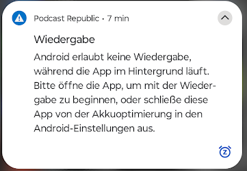 Ich habe mein 50 Neo seit Juli 25. Seit ca. 4 Wochen habe ich beim Abspielen von Poscasts über die App "Podcast Republic" Unterbrechungen der Wiedergabe. Folgende Meldung erscheint dann.