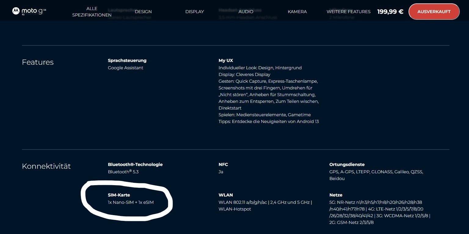 Erst als ich die zweite SIM einlegen wollte, ging das nicht. Daraufhin ging ich zu MediaMarkt, da kaufte ich das Handy, die sagten mir, dass die zweite SIM eine eSIM sein muss.MotoErpel schrieb:... Hallo Pithein, ... woher genau kommt die Information, dass nur eine eSIM möglich sei?